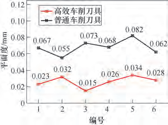 3.2 高效车削刀具与普通车削刀具的加工表面平面度对比