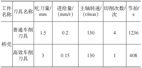 3.1 高效车削刀具与普通车削刀具的加工参数对比