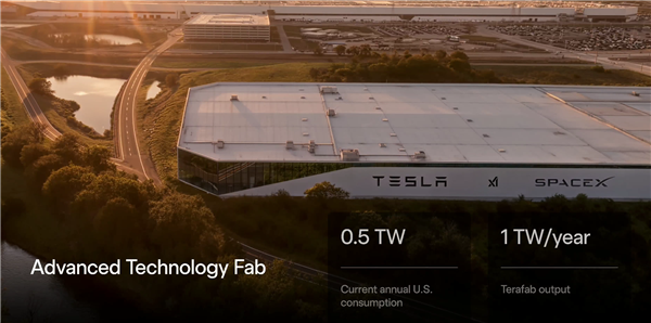 和我们熟悉的台积电、Intel晶圆厂不同,TERAFAB从名字里就透着野心,“TERA”代表太瓦(Terawatt),这座“太瓦工厂”的核心目标,是每年产出超过1太瓦的总算力,也就是1万亿瓦的计算能力,覆盖逻辑芯片、存储芯片与先进封装全链条。