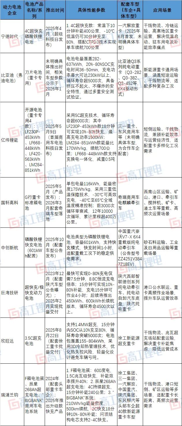 从宁德时代推出天行 II 轻商全场景定制化解决方案,亿纬锂能与徐工集团深化新能源重卡战略合作,到国轩高科签下500台电动重卡电池配套订单,行业头部企业动作频频。