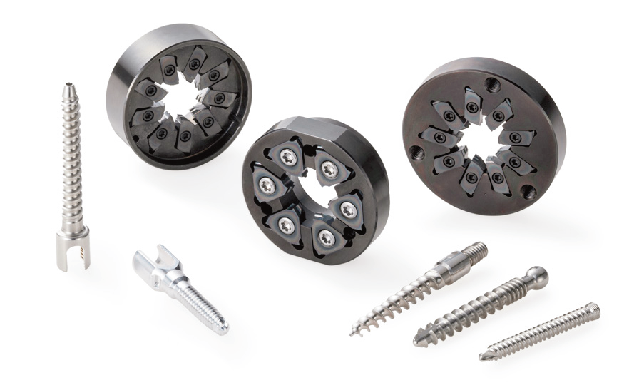 TW系列(见图2)是为了实现医疗行业及航空航天领域等高效率螺纹加工需求而开发的旋风铣刀。根据用途不同,有两种类型的产品可供选择,分别是重视效率的L型和重视性价比的T型。可对应多种设备(例如西铁城,星昂,津上等)。可对应多种螺纹加工,刀片可根据螺纹形状进行非标对应。采用强韧母材,可抑制崩损,耐热性好。与特殊涂层组合,可实现稳定加工。