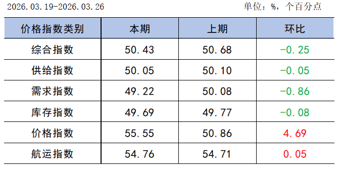 航运市场方面,本周市场呈现“国内冲高回落但涨幅显著,国际成本驱动高位分化”格局。国内航运市场方面,随着封航解除,港口装卸作业恢复,运力周转效率提高叠加下游对持续上涨的运费接受度有限,新增货盘释放减少,国内运价先扬后抑;海运煤炭运价指数(OCFI)周平均为1115.42点,环比上升247.63点。国际航运市场方面,在多重因素交织影响下,呈现结构性分化特征,整体运价在高位区间震荡。中东地缘冲突进一步从成本端固化高运价基础,而各航线受极端天气扰动及实际需求影响,涨跌不一。整体而言,国内市场由阶段性需求释放而导致运价高位盘整,国际市场则由地缘冲突带来的高成本和区域性的货盘释放导致运价偏强运行。