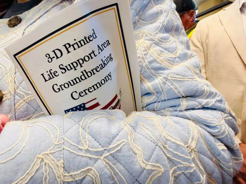 从初步测试迈向全面实地部署这并非陆军首次在Fort Bliss尝试3D打印营房项目。2025年,基地内就落成了首批作为小型试点项目的3D打印营房。早期的试点项目包含三栋建筑,每栋占地约8000平方英尺,主要用于验证技术的实际可行性。如今启动的新工程在前期成功经验的基础上进行了大幅扩充,标志着这项前沿技术正正式从测试阶段迈向更大规模、更具实用性的全面部署。△3D打印Life Support Area奠基仪式纪念品。