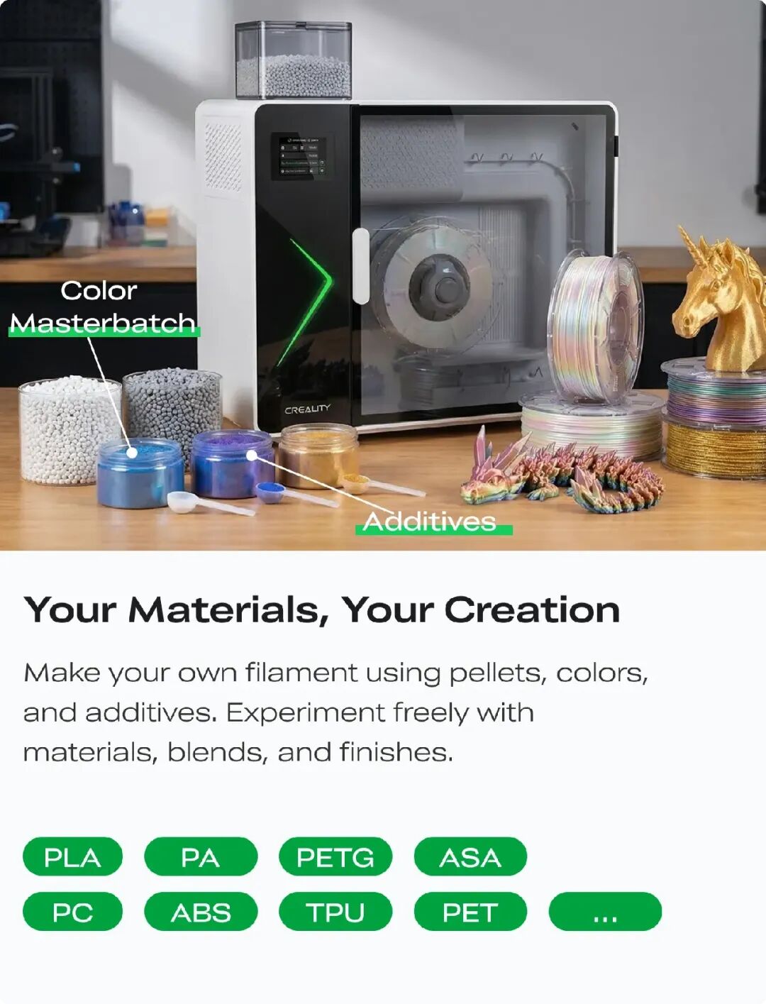 众筹的火爆背后,是全球市场对3D打印循环经济解决方案的迫切需求,更是创想三维生态布局实力与品牌底气的直接体现。众多早期支持者留言表示:“终于有一款桌面级设备能解决打印废料的困扰,既环保又能降低成本,还能DIY专属耗材,完美契合创作者的核心需求。”这份认可,正是创想三维生态产品价值的最佳佐证。