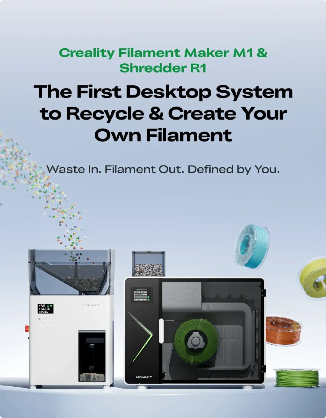2026年4月2日,南极熊获悉,创想三维旗下创想生态推出的首款桌面级耗材生成系统——Creality Filament Maker M1 & Shredder R1(耗材生成器M1 & 粉碎机R1)正式登陆全球最大科技众筹平台之一Indiegogo,众筹价格为1199美金,以20分钟破1000万人民币、首日破3000万人民币的惊人成绩,刷新了Indiegogo历史3D打印项目众筹纪录,成为2026年全球3D打印众筹项目“王者”。