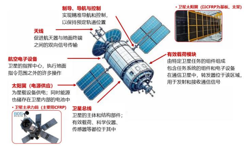 (2)材料革命倒逼设备升级 卫星/火箭减重1kg≈节省2万美元发射成本,碳纤维复材(CFRP)成为刚需,从整流罩、箭体、卫星承力筒、太阳翼到天线结构全面渗透,复材工业母机迎来爆发期。