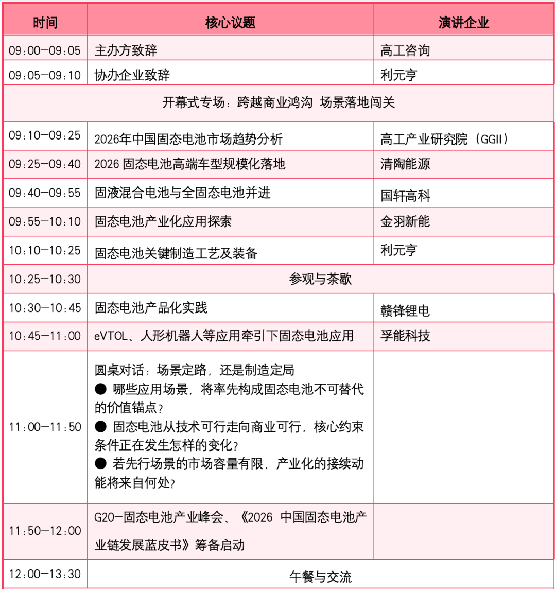 20+企业阵容揭晓,2026高工固态电池技术与应用峰会议程更新