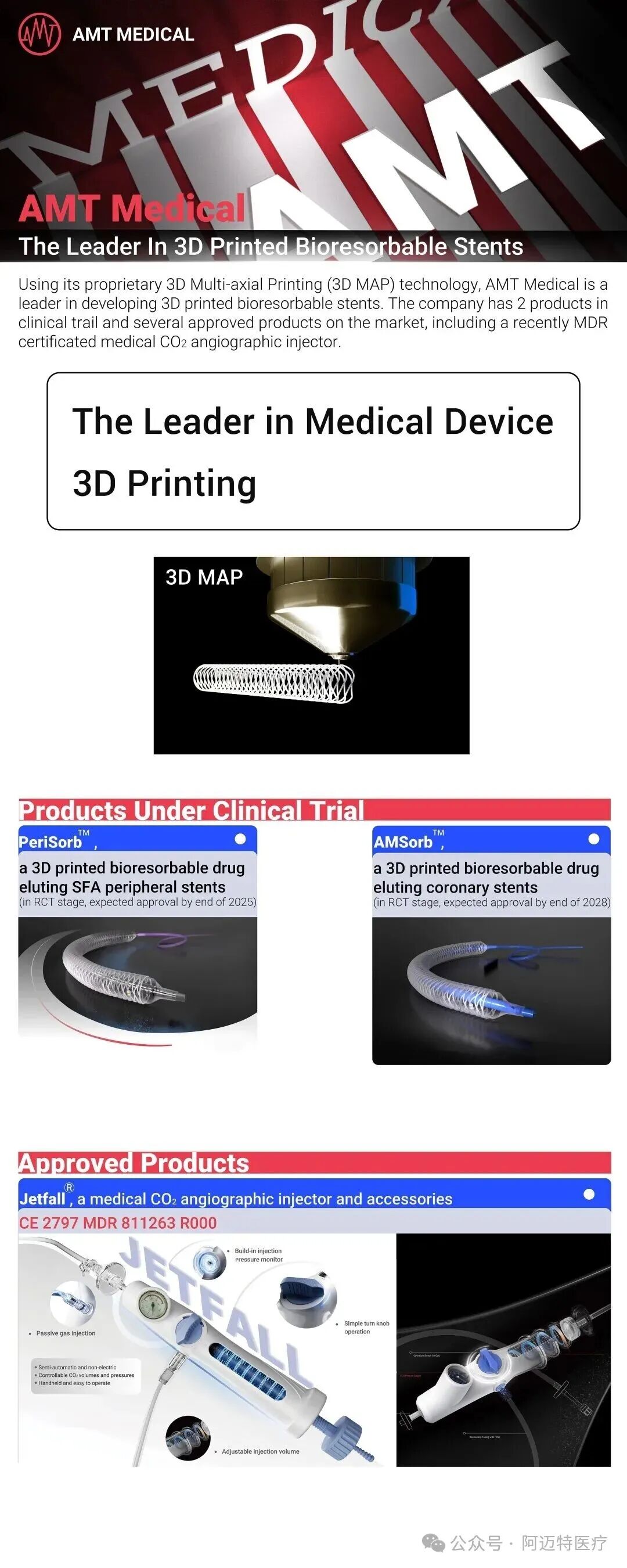 2025年,北京阿迈特医疗器械有限公司作为项目牵头单位,获批由国家工业和信息化部主责的“十四五”国家重点研发计划“增材制造与激光制造”重点专项应用示范类项目- “定制化增材制造在医疗可降解支架中的应用示范研究”。