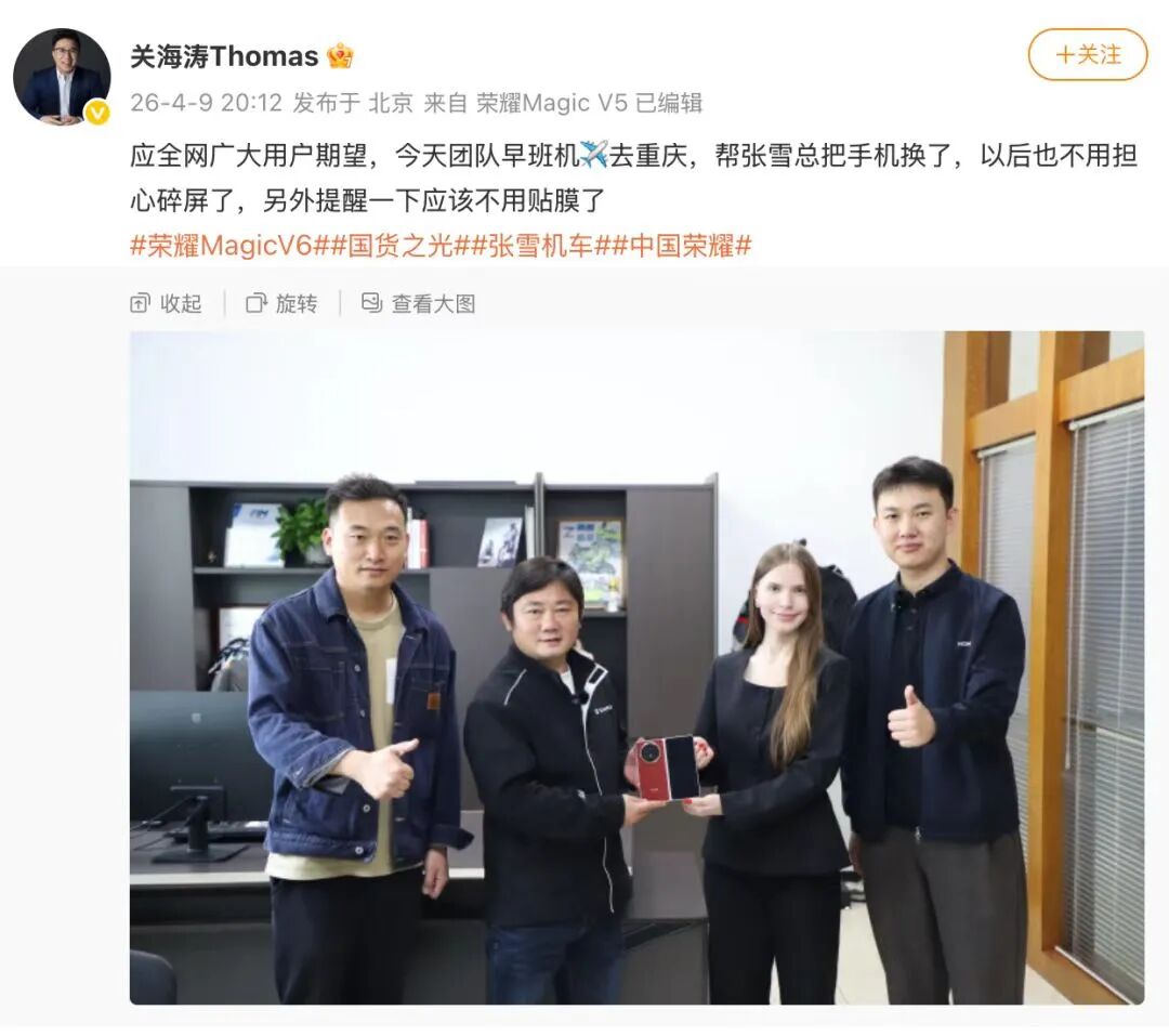 终于!张雪换掉了2000元的碎屏机,与首个中国手机品牌达成合作