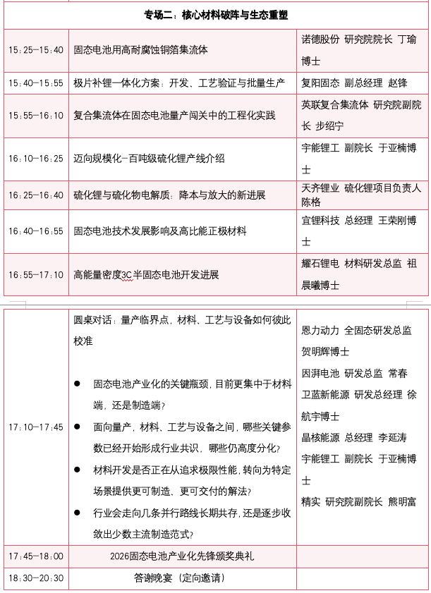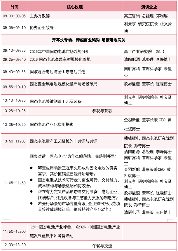 清陶/卫蓝/国轩/赣锋/天齐...2026高工固态电池峰会阵容公布