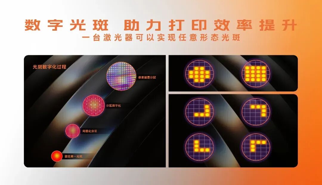 点环光斑技术:推出双光束方案,点环光斑独立可控,环形光斑可稳定熔池、减少飞溅,点形光斑实现高能量密度,显著提升打印效率与质量。