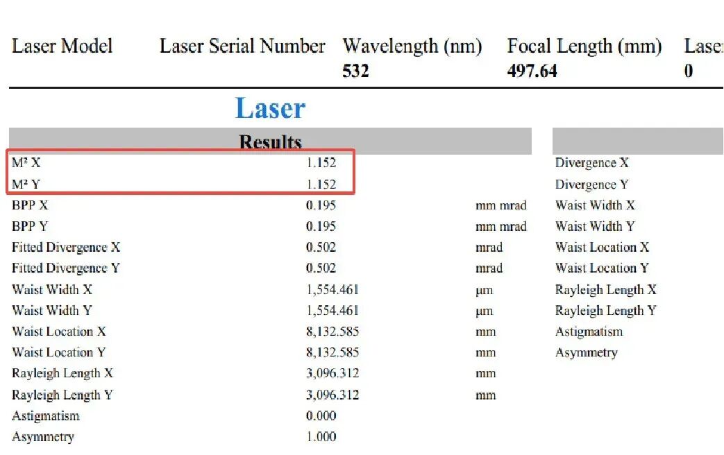 ▲宝辰鑫绿光增材方案M²测试