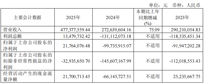 年报显示,2025年,长光华芯实现营业收入4.77亿元,同比大增75.09%。与此同时,公司利润端实现历史性突破,归母净利润2176.41万元,较2024年亏损9973.59万元实现了大幅扭亏。