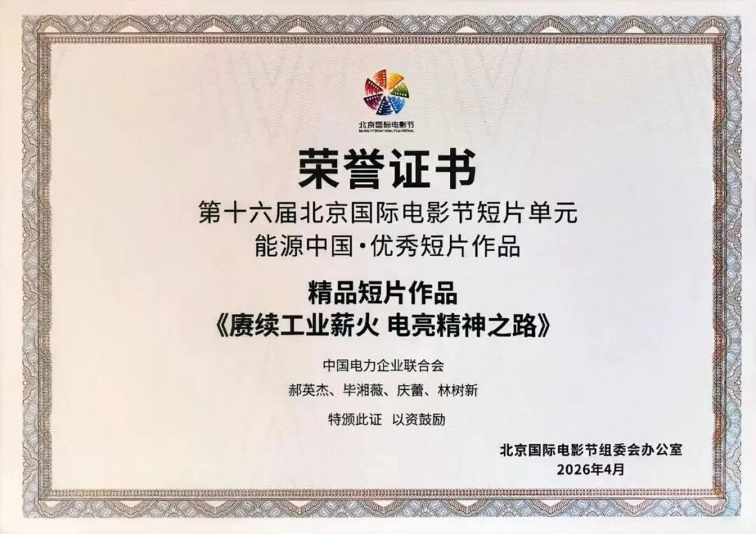 近日,第十六届北京国际电影节“短片单元·能源中国”优秀短片作品评审结果正式揭晓,中国电力企业联合会创作报送的《赓续工业薪火 电亮精神之路》短片从全国1300余部能源领域作品中脱颖而出,被评为精品短片作品。此次获奖,标志着中电联在国家级影视作品奖项领域实现 “零的突破”,是中电联深耕行业文化建设、强化电力精神传播工作的重大成果,更是我国电力行业文化自信的生动彰显。