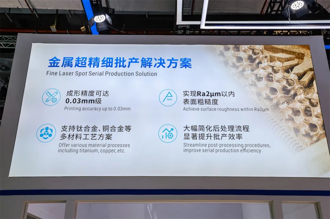 此外,在2026年的TCT亚洲展上,华曙高科还展出了其金属超精细批产解决方案,金属3D打印的成形精度可达0.03mm级,实现Ra 2μm以内的表面粗糙度。