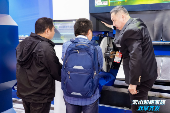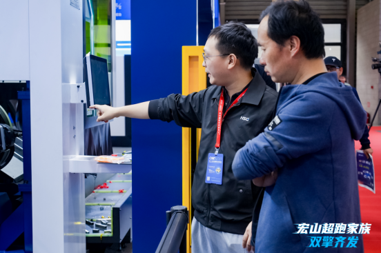 开展首日,宏山激光展位人气高涨,成为展馆热门焦点之一,持续吸引大批专业观众驻足参观。活动现场,宏山超跑家族系列设备重磅亮相并带来实机切割演示,深度还原真实生产加工场景。