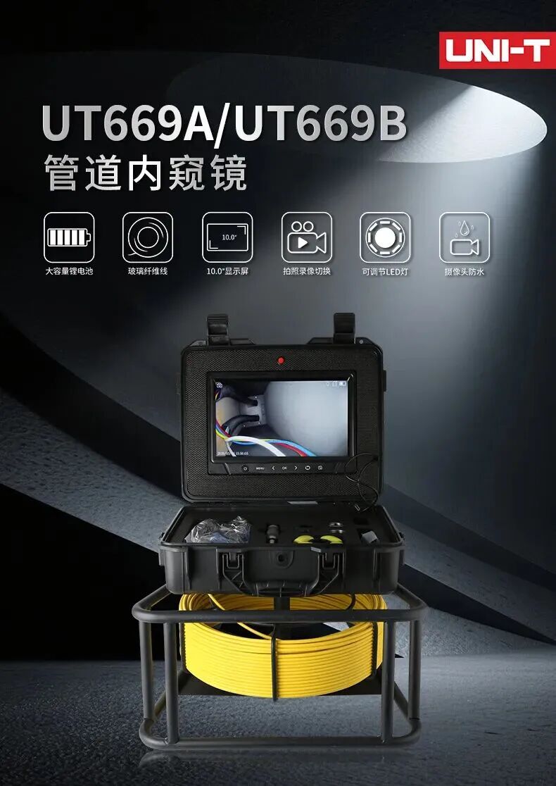 UT669A/UT669B工业管道内窥镜以高清成像、灵活探测、智能互联为核心,无需拆解即可深入管道与腔体内部,精准排查隐患,广泛应用于工业制造、能源电力、石油化工、市政工程等领域。