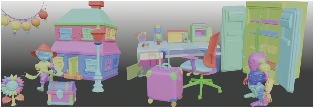 部件级分割与补全:给定一个3D模型,可自动识别并分割出各部件,并对缺失部分进行智能补全。