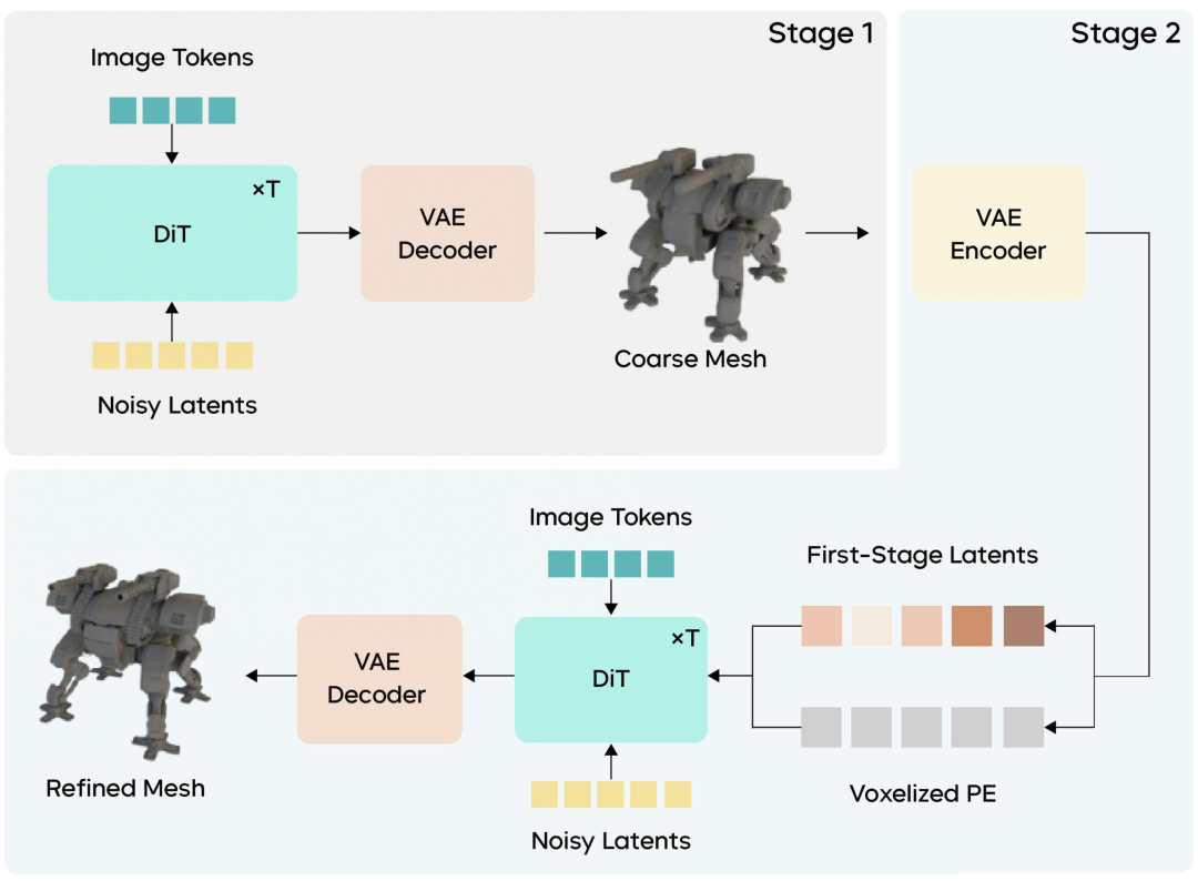 Seed3D 2.0的核心技术改进在于引入了Coarse-to-Fine(粗到精)两阶段生成策略,将"整体结构"和"几何细节"解耦,分开优化。
