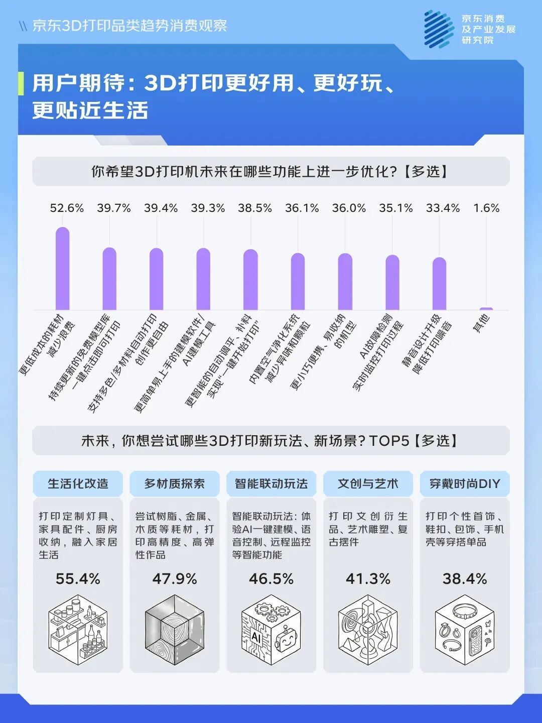 今年京东3D打印产品销量增长超100%;3000消费者调研洞察