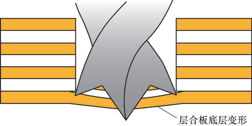 图14 玻璃纤维增强复合材料群钻钻削出口阶段示意