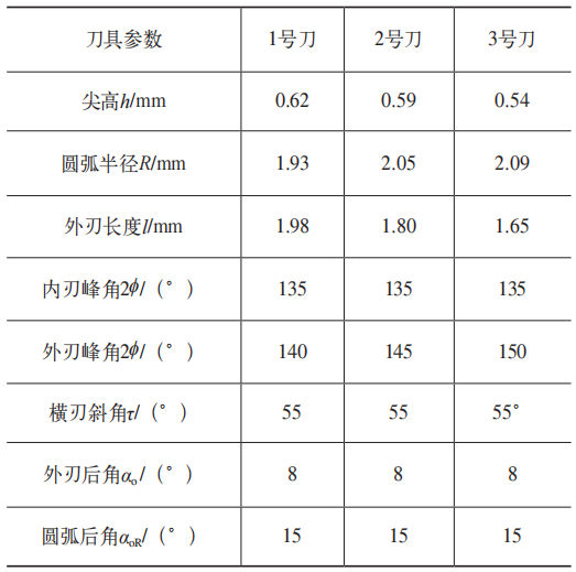 表3 ZGMn13高锰钢群钻钻尖几何参数