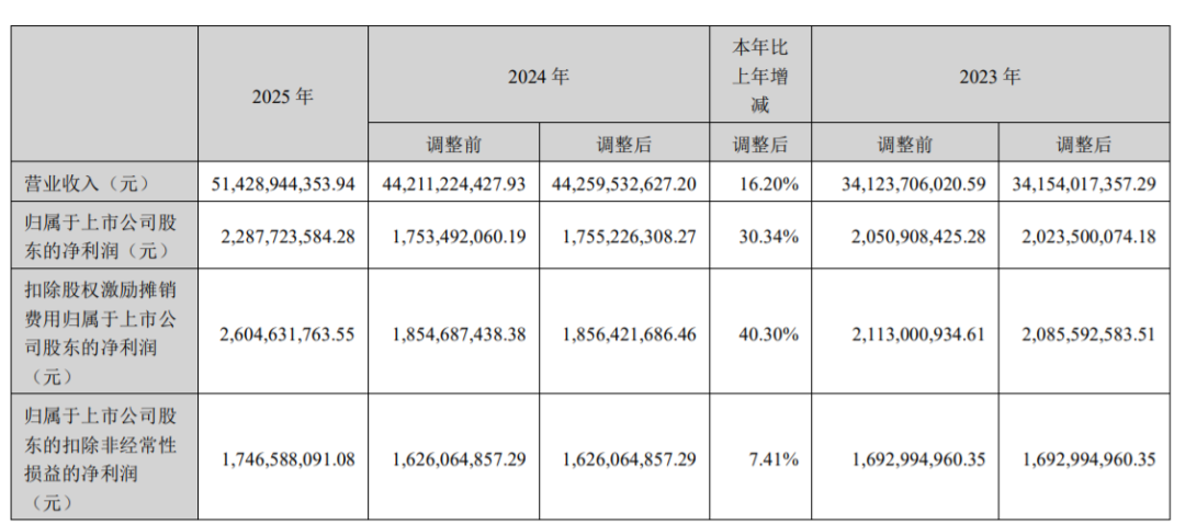 2026年4月23日,南极熊获悉,近日领益智造(002600.SZ)发布2025年年度报告。报告显示,2025年全年实现营业收入514.29亿元,同比增长16.20%;归属于上市公司股东的净利润22.88亿元,同比增长30.34%;经营性现金净流入44.33亿元,多项核心指标均创历史新高。