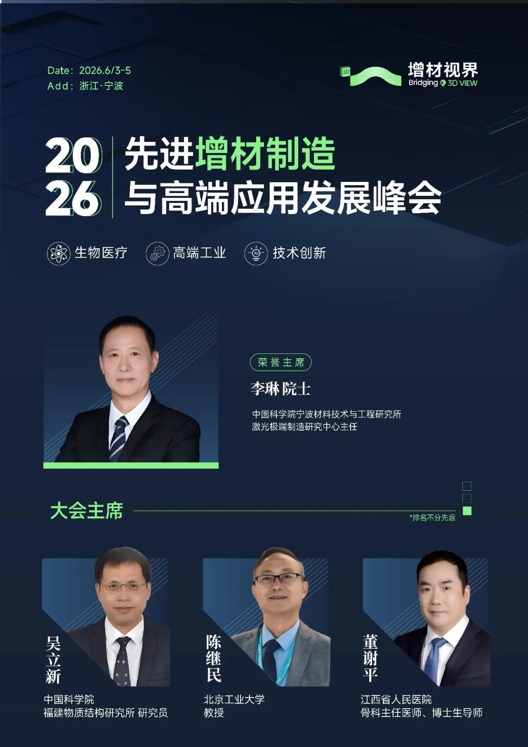 南极熊获悉,2026先进增材制造与高端应用发展峰会将于6月3-5日在浙江宁波举行,大会聚焦3D打印在骨科、生物制造、航空航天、机器人等领域的应用实践,探讨材料创新、激光加工、AI协同等解决方案。
