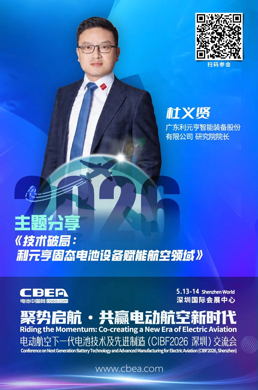 演讲前瞻 | 利元亨杜义贤:技术破局 利元亨固态电池设备赋能航空领域 | CIBF2026深圳交流会
