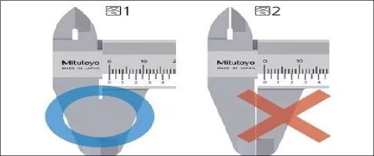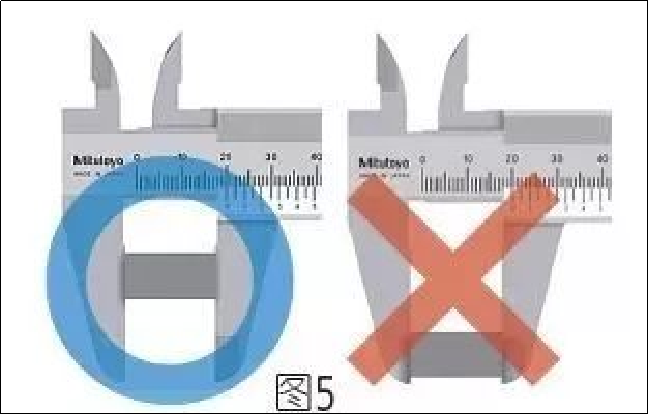 2. 测量时,请使用一定的力量,尽量在量爪根部测量,如图5所示。