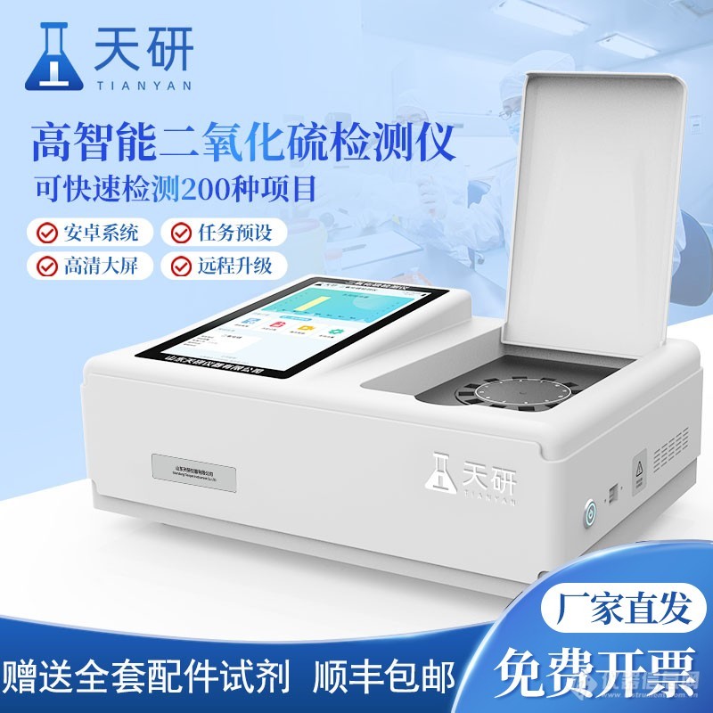 在食品安全监管日益严格的当下,食品二氧化硫检测仪作为保障食品添加剂合规使用的核心设备,其性能稳定性与数据精准度直接影响检测结论的可靠性。天研仪器推出的食品二氧化硫检测仪,凭借技术集成度与场景适配性,成为市场监管、食品加工及流通领域的重要工具。选购时需重点关注以下核心维度: 一、技术精度:多波长融合消除基质干扰 食品二氧化硫检测仪的核心价值在于精准识别复杂基质中的微量残留。天研仪器采用高精度进口四波