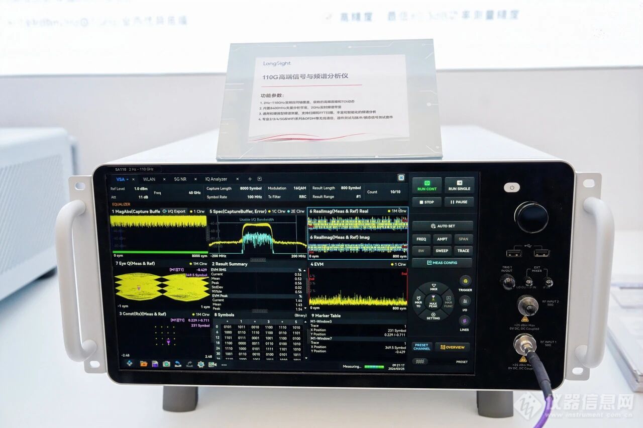 在3月25日至27日举行的全球半导体行业盛会——SEMICON China 2026上,国产仪器领域的创新力量再次成为焦点。深圳市万里眼技术有限公司(以下简称“万里眼”)携其最新突破性产品——110GHz频谱分析仪高调亮相,并凭借其卓越的性能指标,宣告国产高端测试仪器正式迈入业界第一梯队,为解决行业“卡脖子”难题提供了有力方案。突破“无形”屏障:110GHz同轴连续覆盖,性能实现正向增益在电磁频谱