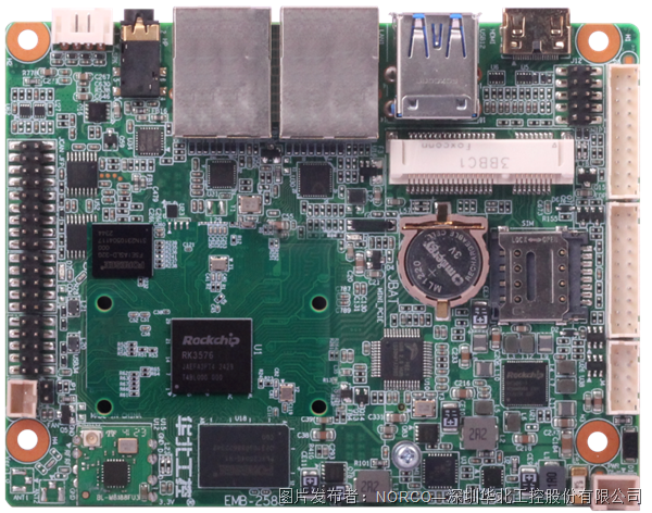 华北工控为开拓工业多媒体应用推出EMB-2583嵌入式主板,采用瑞芯微旗舰级RK3576处理器,支持6 TOPS算力、4/8K解码与多屏显示,可以让工业设备具备强大的视听和交互能力,提供双网口、多路USB和COM,板载WIFI,支持4/5G,可实现工业设备间的流畅连接,同时具备工业级高可靠性,完全满足工业HMI、数字标牌、智能机器人与视觉导引设备等特定场景的产品需求。 华北工控EMB-2583的主