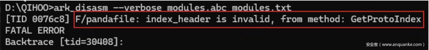 使用ark_disasm对加固后modules.abc反编译失败,错误提示如图所示。看到此提示的时候可能会陷入茫然。没关系,现在是AI时代。让AI来解决一下吧。把错误直接贴给Agent。
