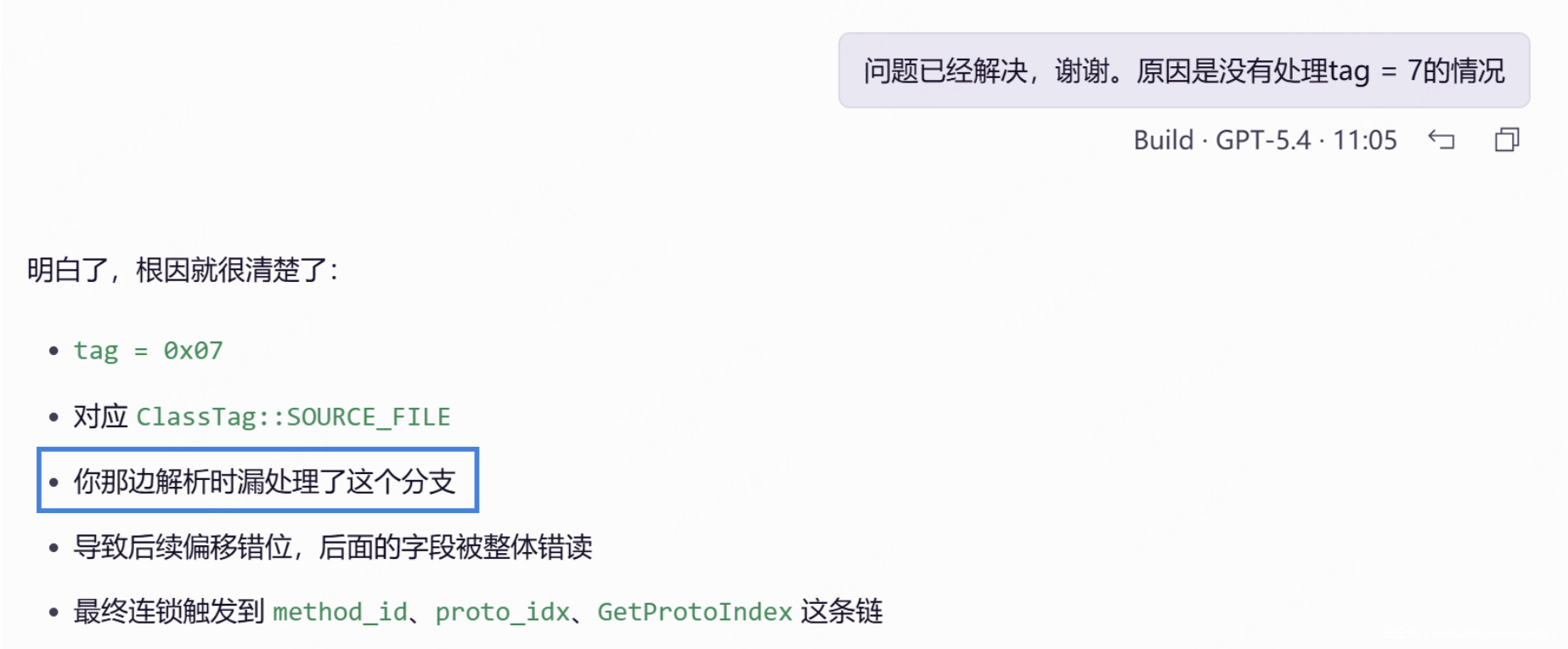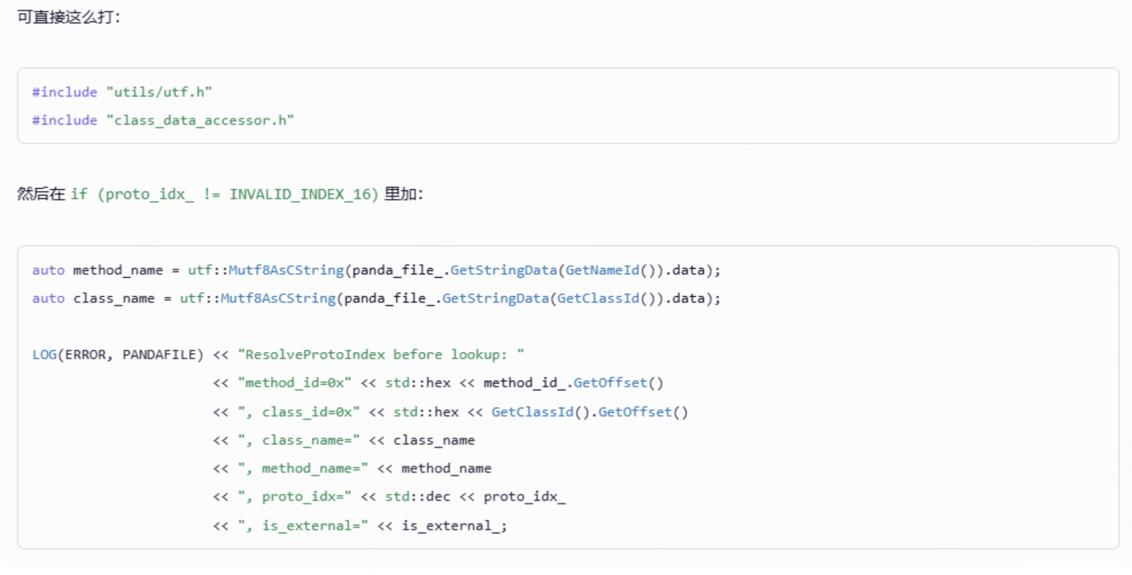 只是找到调用源头还没有用,需要在代码中插入一些日志,重新编译ark_disasm才好排查。接下来就让Agent来智能插一些日志协助我们排查问题。