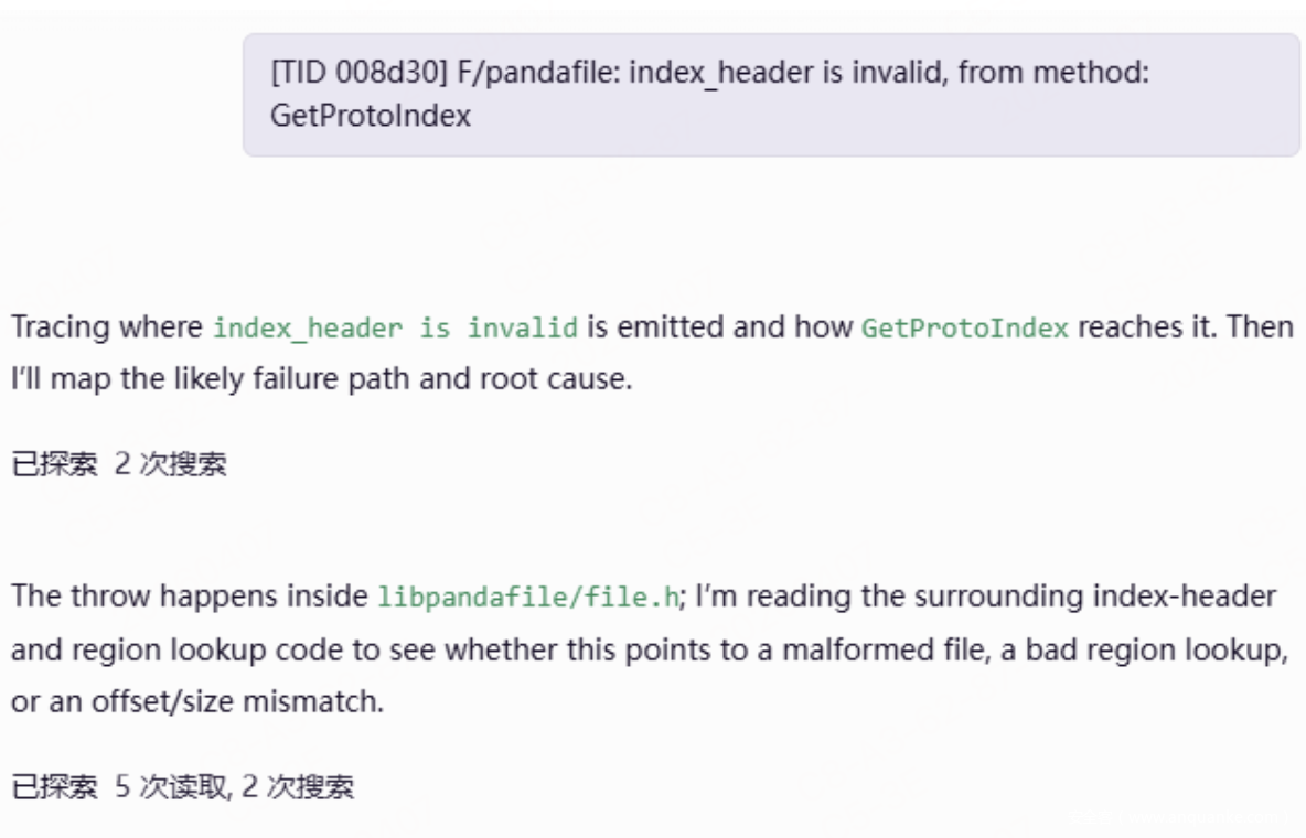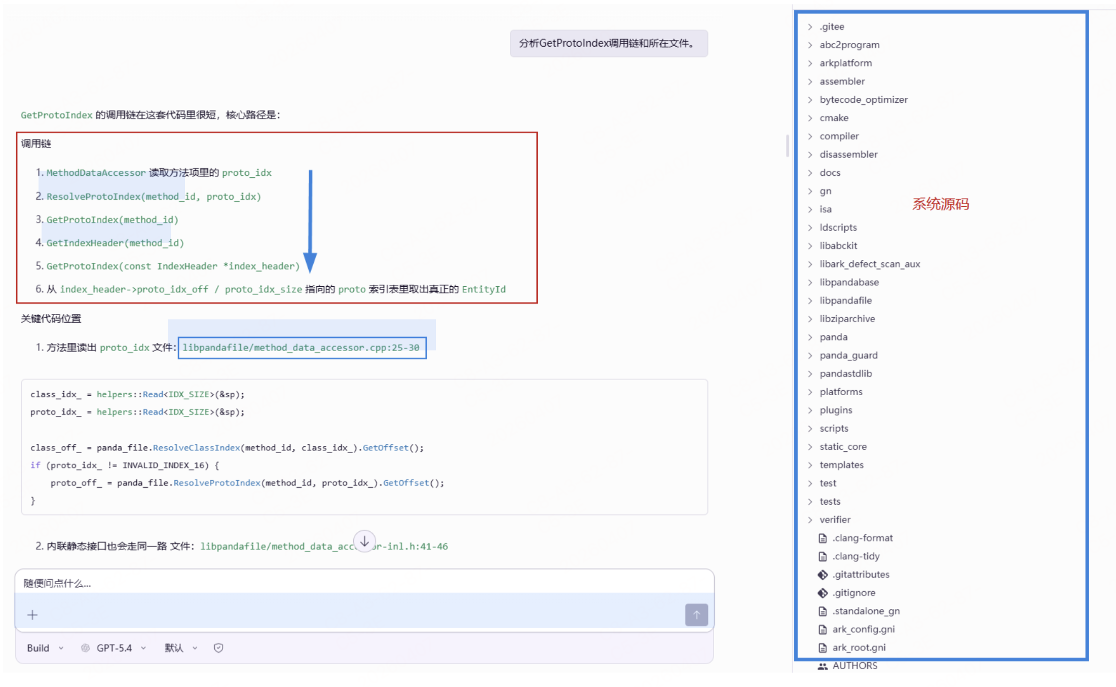 360技术专家换了种思路。为何不基于源码先摸清GetProteIndex的调用逻辑。这点如果用人来分析的话,就会慢很多。看AI是如何进行分析的。