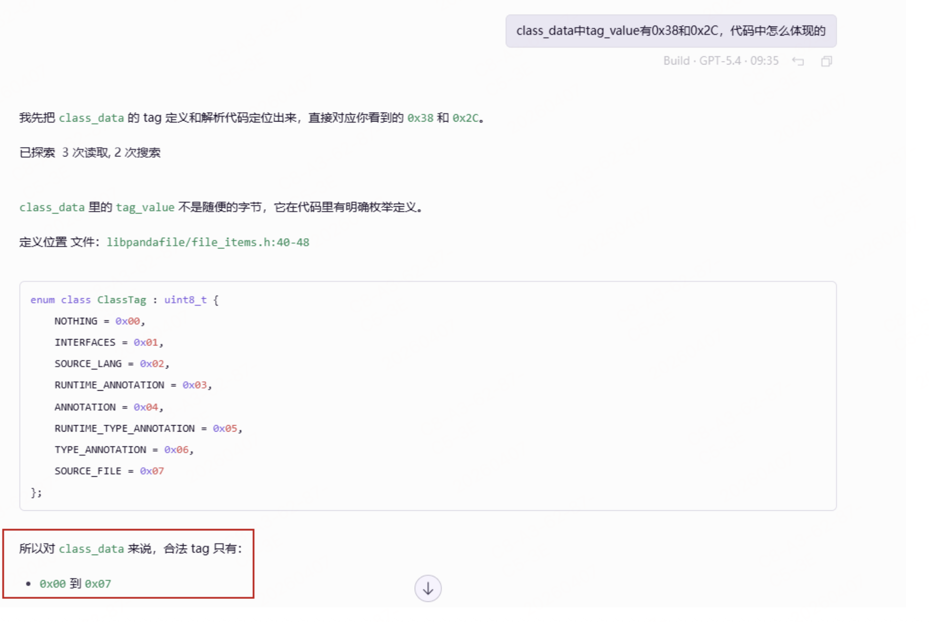 当用010editor提供的默认abc12.bt解析原始modules.abc文件时,在第634个类出现了中断。排查过程中,触达了知识盲区。带着疑问咨询Agent。