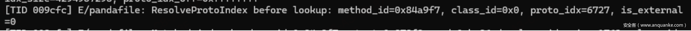 很明显,新插入的代码在解析ABC文件时提前中断,导致方法名或类名无法打印。因为重新构造的ABC文件在某处偏移错了。故去掉方法名和类名打印,只打印偏移(methodID),重新编译ark_disasm。