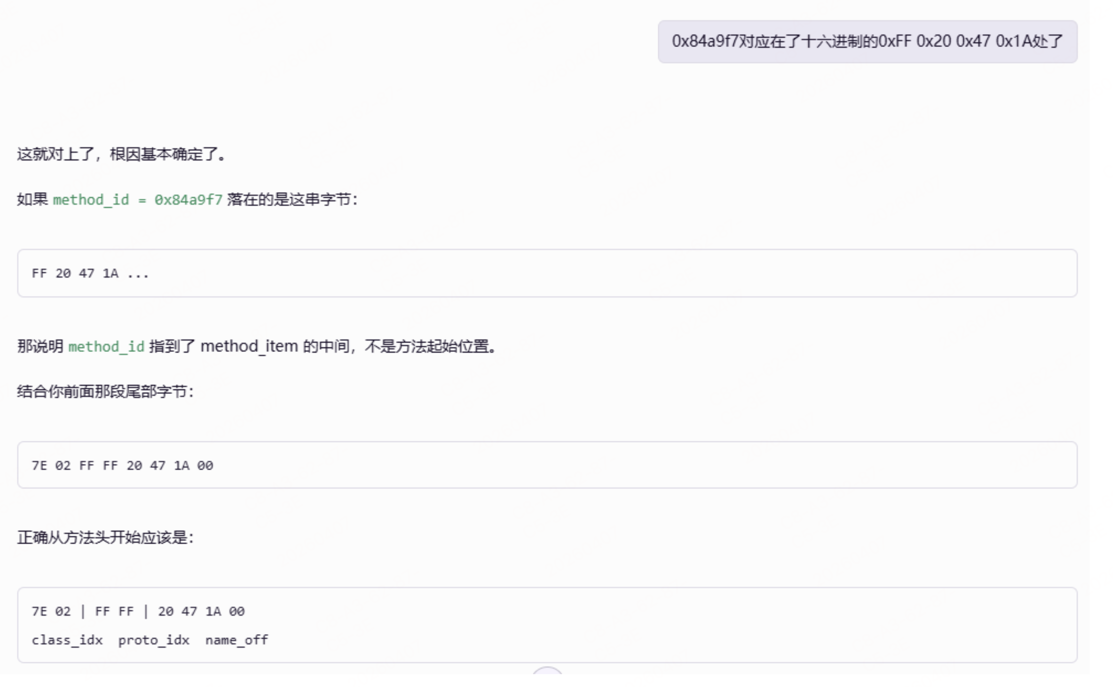 所以,现在最关键的问题是,为什么在解析这个method的时候,偏移错位了?
