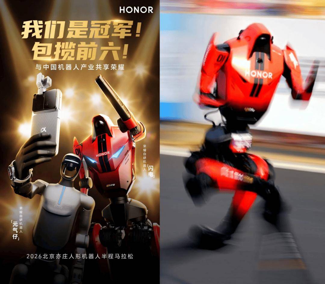 在近日落幕的亦庄人形机器人半程马拉松赛事中,一场看似“爆冷”的逆袭引发行业震动——手机厂商荣耀推出的“闪电”机器人不仅以破纪录成绩包揽赛事前六名,更在技术、产品与商业层面实现对传统机器人巨头的全面超越。这场赛事被视为人形机器人行业格局重构的缩影,标志着消费电子巨头正以“降维打击”之势重塑赛道规则。作为入局机器人领域仅半年的“新玩家”,荣耀的惊艳表现令行业侧目。此前被视为标杆的宇树科技H1机器人在终