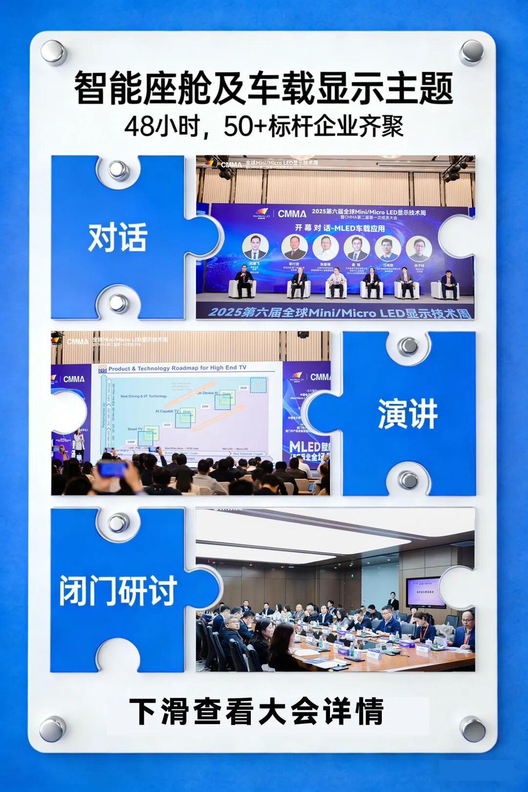 会议旨在助力构建车规级显示与智能座舱系统协同开发平台,加快车规级显示“上车”验证周期,围绕MLED车规可靠性、光学与触控集成、座舱显示系统、高透高亮Micro LED显示发展趋势等核心议题进行闭门交流,推动形成行业共识与技术规范,助力MLED车载显示从高端市场应用走向规模化前装量产,赋能智能汽车显示体验全面升级。