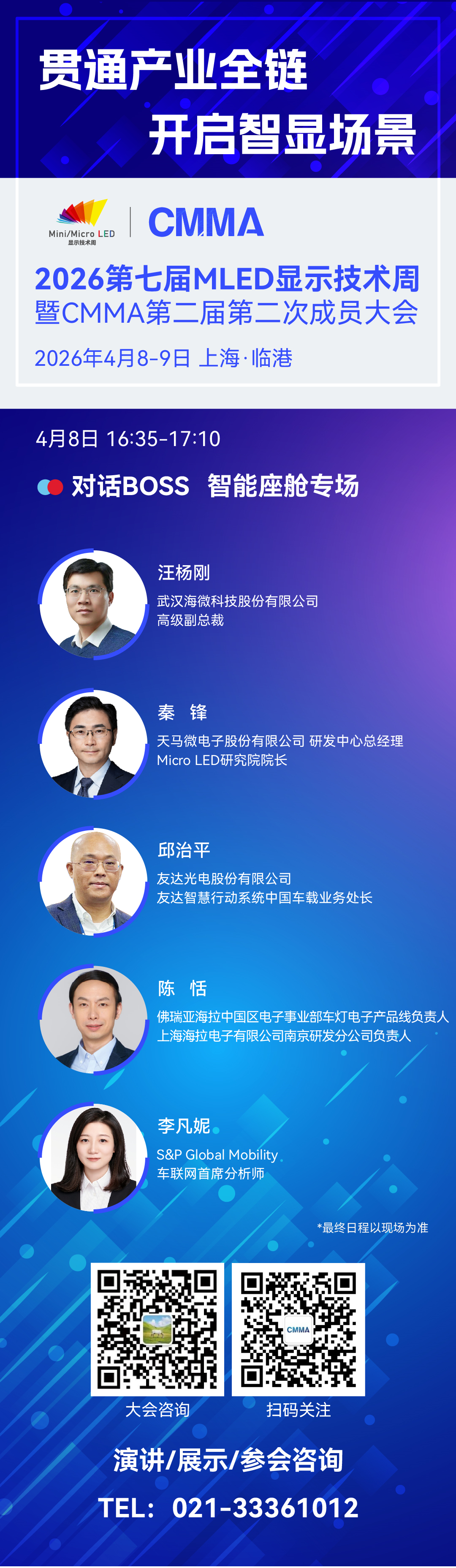 当智能座舱成为人车交互的“第三空间”,显示技术如何平衡性能与成本?Mini LED背光方案何时能够走入下沉市场,覆盖更多车型?Micro LED进入前装清单还需要跨过哪些工程化门槛?在座舱定义权博弈中,整车厂与屏厂之间如何建立高效的协同开发机制?对话BOSS:智能座舱专场,洞悉2026智能座舱与车载显示产业发展趋势。
