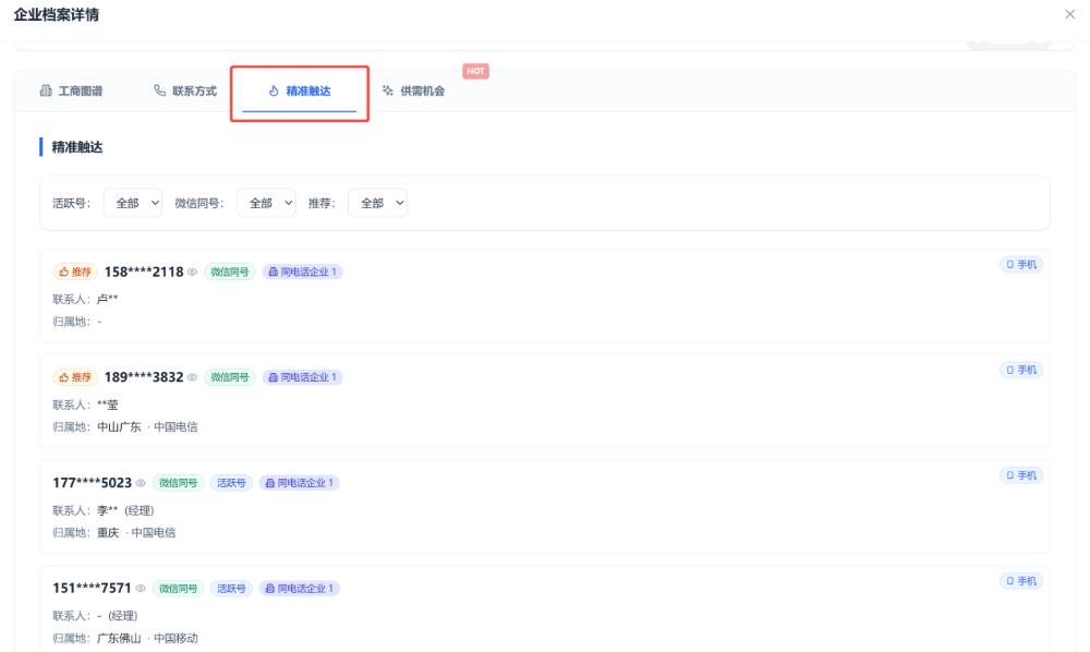 客户数据陈旧、断层、失真,不仅浪费海量拓客成本,更让无数潜在商机白白流失。想盘活老客户,却苦于无工具、无渠道、无效率……难道只能眼睁睁看着优质资源作废?慧拓客客户信息补全模块重磅上线!精准修复,让客户数据“活”起来针对企业客户数据老化、信息不全的核心痛点,慧拓客企业客户信息补全功能聚焦四大核心维度,一站式搞定数据焕新,把沉睡客户库变成业绩增长引擎。还在对残缺不全的客户档案发愁?慧拓客一键批量校准、补齐工商资质、企业地址、经营范围等全套基础信息,把杂乱错漏的“烂档案”变成规整清晰的“精准画像”。客户经营变了、规模扩了、需求换了,你还在按老思路跟进?慧拓客实时同步企业经营动态、业务调整及供需机会,帮你精准拿捏客户实力与需求,让每一次跟进都有的放矢,转化效率直接拉满。对接人离职、找不到决策层、在无关人员身上耗费精力?慧拓客精准锁定企业老板、决策人、项目负责人等核心角色,直接对接“能拍板”的人,砍掉无效沟通,打通合作最后一公里,谈单速度快一倍。电话空号、微信停用、邮件退信?慧拓客智能核验并更新有效手机号、企业邮箱等联络方式,让每一次外呼、每一条消息都能精准送达,轻松唤回沉睡老客。慧拓客客户信息补全功能,从来不是简单的信息填充,而是企业客户资产的深度盘活与价值再造:- 降本增效:省去人工排查、挨个核验的繁琐耗时,降低人力成本