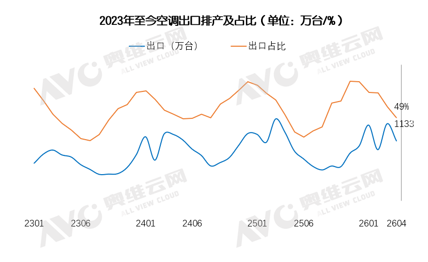 从行业逻辑来看,企业存在极强的涨价动力。经历了去年惨烈的价格战,行业整体盈利水平已跌至冰点,结构下行的局面让绝大多数企业处于微利甚至亏损的边缘。进入2026年,提结构、改善盈利能力成为企业的重要目标,叠加AI产品概念,推新卖高是摆脱困境的主旋律。而现实的复杂性在于,盈利并非企业一厢情愿涨价就能实现。尽管企业有着强烈的涨价意愿,但零售端的需求疲软却让涨价变得异常艰难。3月过半,零售数据并未释放出明显的旺季信号,消费者存在未来预期不确定性,价格敏感度提升,在需求收缩的大环境下,未切中需求痛点和产品差异的单方面提价都可能导致市场份额的流失。“想涨不敢涨”的尴尬局面,在部分头部企业表现尤为明显。部分盈利较好的企业明确表态不跟风涨价,并在渠道端追加返利补贴,在稳定渠道信心的同时,也无形中给其他品牌设置了价格天花板。此外,线上低价心智进一步加剧了提价难度。为了迎合当前主流的消费降级趋势,电商平台纷纷与企业谈合作签下大额订单,并以大单品策略和百亿补贴等方式,引导消费者关注低价爆款。线上平台的价格导向,压缩了企业和线下渠道结构升级空间,使得企业很难通过单纯涨价来转嫁成本压力。另一方面,“铝代铜”降本渠道因短期难实现量产,市场教育尚需时日,其成本优势尚未完全显现。目前头部企业若推广铝制部件,必将面临一定的市场信任阻力,降本之路遭遇技术、成本与品牌认知的三重困境。除了成本与需求端的矛盾,企业自身的经营节奏也面临严峻考验。开年以来,随着AI智能新品空调研发速度的加快,行业技术迭代周期缩短。然而,新品上市的加速,意味着企业需加快对旧款的消化速度。目前,许多渠道商手中仍积压着去年的库存,也造成4月内外销排产双双下滑。对于企业而言,如何借助“五一”大促、618等关键节点,切旧上新实现新旧产品的平稳过渡,成为当前经营策略的核心。一方面,企业需要集中力量通过促销清理旧款库存,为新品腾出市场空间;另一方面,又要控制促销力度,避免因过度降价损伤价格心智和盈利能力。这种“既要保量去库存,又要提质保利润”的高难度操作,是对企业渠道管控能力和营销策略的极致考验。4月排产数据的收缩,也反映出企业在旺季来临前的审慎观望态度,收缩产能避免库存积压带来的风险。地缘冲突叠加高库存,出口意外“寒流”下滑12.6%