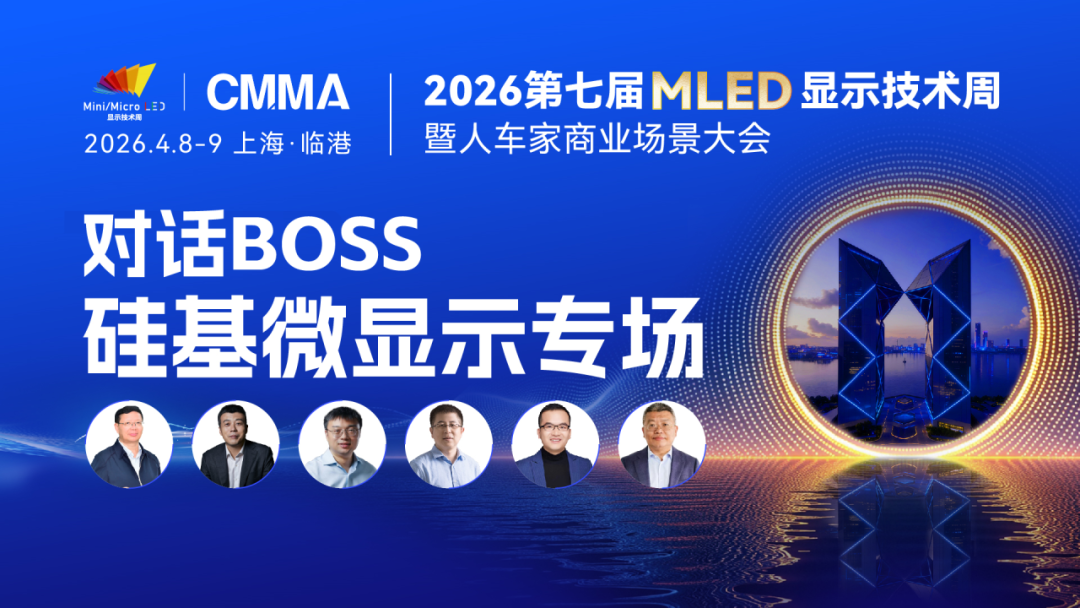 从产线投建到资本涌入,从技术突破到终端放量,面对加速增长的微显示市场,RGB堆叠与量子点色转换哪条全彩化路径能率先迈过量产门槛?晶圆级键合工艺如何在良率与成本之间寻求平衡?光波导与微显示的协同设计又该如何实现效率最大化?诸多问题尚未形成共识,2026第七届MLED显示技术周 硅基微显示产业闭门研讨会、对话BOSS:MLED直显专场、主题演讲:MLED工艺及应用专场三大板块,用48小时带您洞悉2026年硅基微显示产业发展风向,行业疑问一站解答!