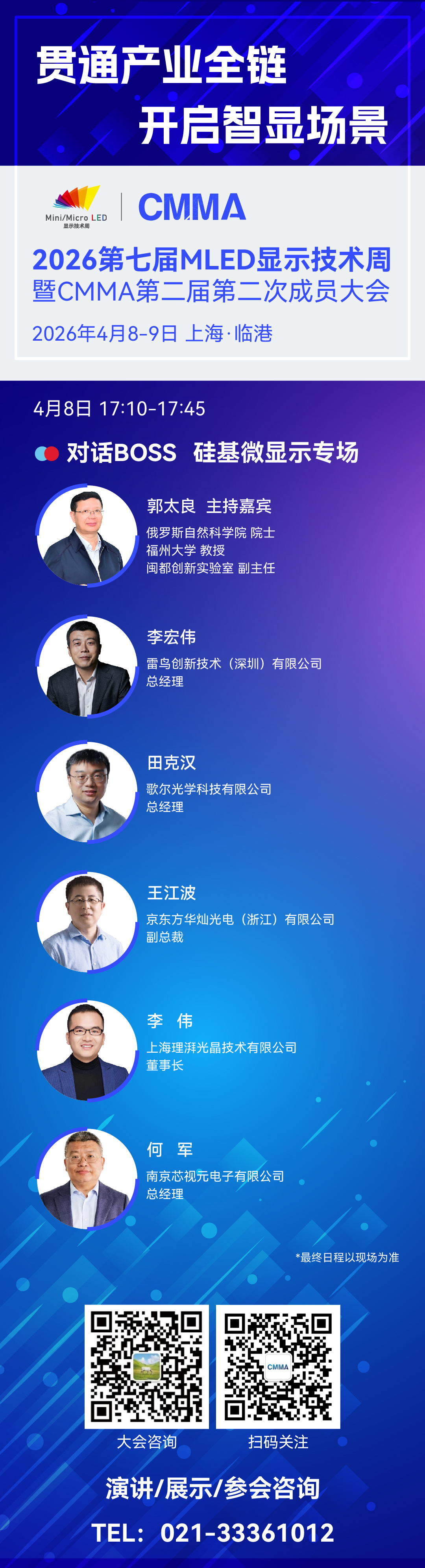 2026MLED显示技术周部分演讲分享嘉宾阵容提前剧透,院士领衔,50+标杆企业高管,10+顶级院校教授齐聚,4月上海见