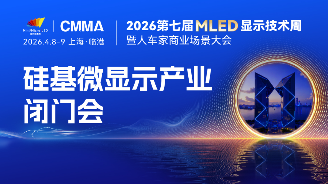2026第七届全球MLED显示技术周将于4月8-9日在上海临港盛大启幕,特设硅基微显示闭门研讨会、对话BOSS硅基微显示专场、硅基微显示工艺及应用专场三大板块,汇聚从显示芯片、面板模组、光学系统到终端应用的完整产业链力量,打造硅基微显示领域最具影响力的产业共识平台。从闭门共识到高层对话,从技术演讲到趋势研判,这里一站集齐您需要了解的全部前沿内容。