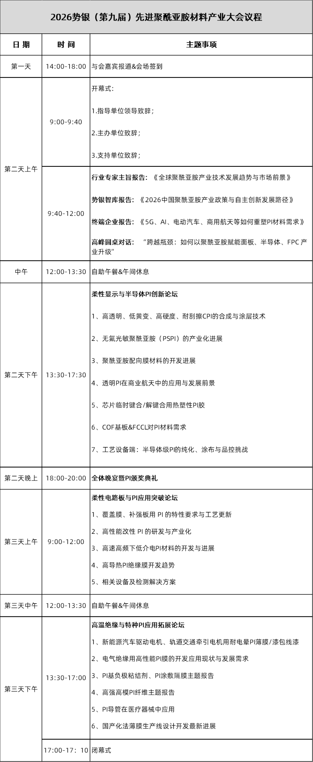 举办时间更改 | 2026势银(第九届)先进聚酰亚胺材料产业大会(5月18-20日,浙江杭州)