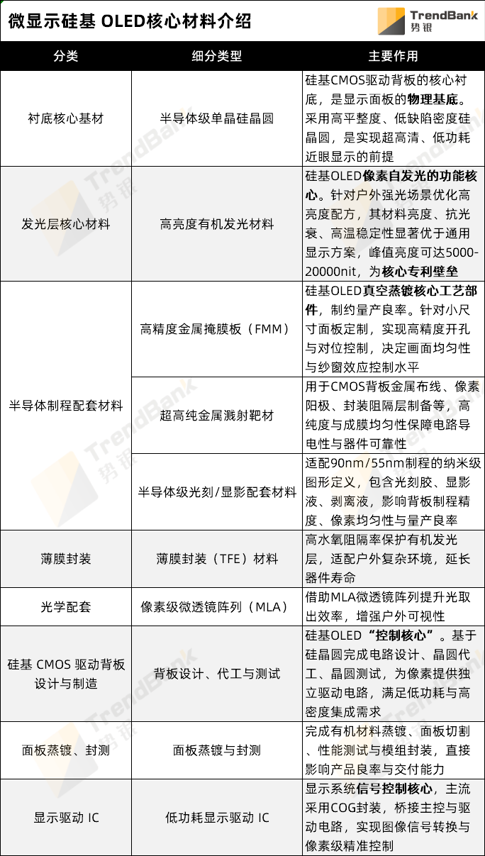 可以预见,随着行业龙头的持续发力,以及更多终端产品的密集落地,硅基OLED产业链将迎来更深度的协同与更激烈的竞争。而所有关于微显示未来的想象——更轻、更亮、更真实——最终都将落脚于这些构成屏幕的、藏在终端背后的材料与工艺之中。