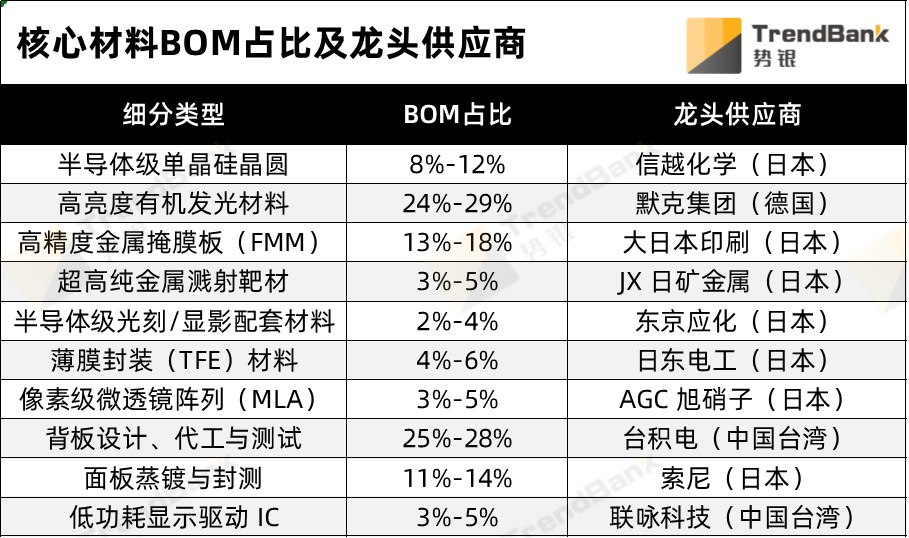 材料拆解:微显示硅基OLED屏核心材料及其BOM占比